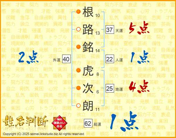 根路銘虎次朗さんの天運は37画の5点!