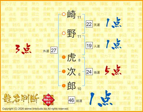 崎野虎次郎さんの総運は46画の1点!