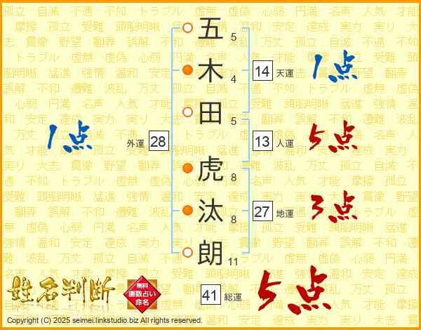 五木田虎汰朗さんの総運は41画の5点!