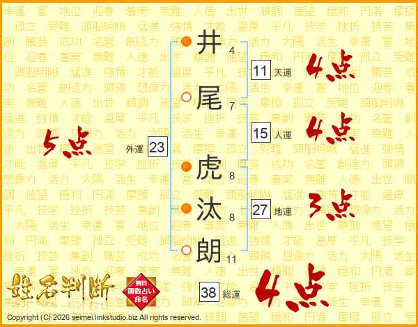 井尾虎汰朗さんの総運は38画の4点!