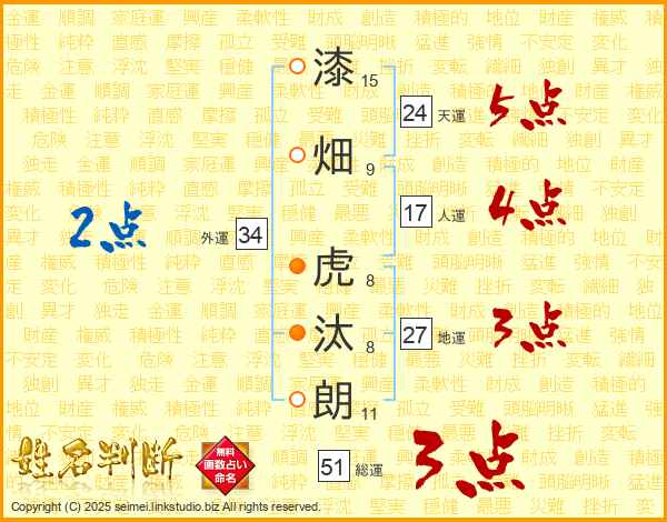 漆畑虎汰朗さんの総運は51画の3点!