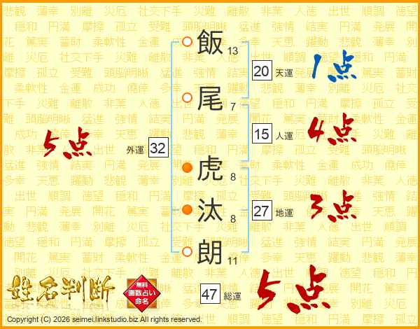 飯尾虎汰朗さんの総運は47画の5点!