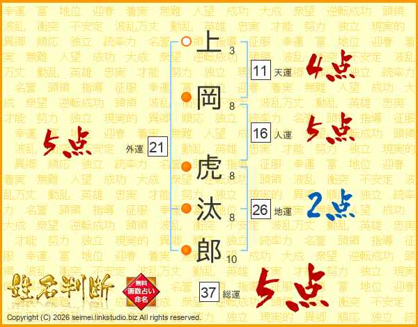 上岡虎汰郎さんの総運は37画の5点!