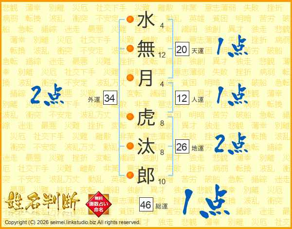 水無月虎汰郎さんの総運は46画の1点!