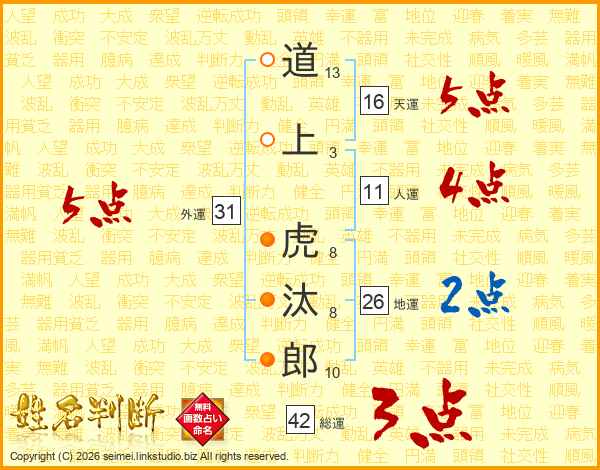道上虎汰郎さんの地運は26画の2点!