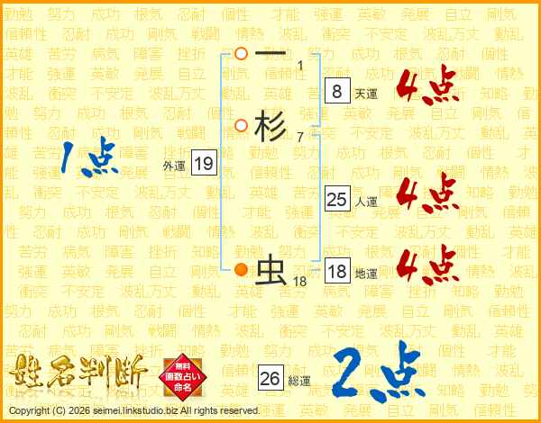 一杉虫さんの総運は26画の2点!