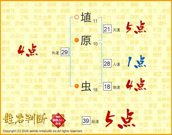 埴原虫さんの総運は39画の5点!