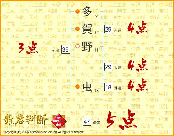 多賀野虫さんの総運は47画の5点!