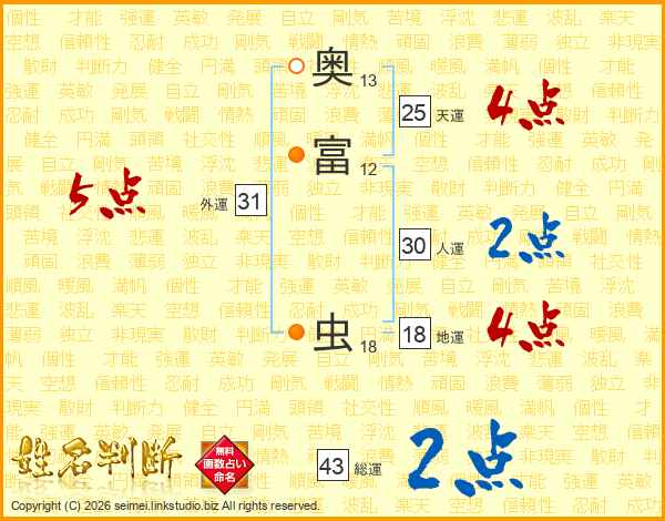 奥富虫さんの総運は43画の2点!