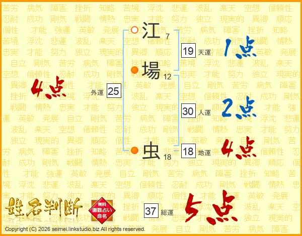 江場虫さんの総運は37画の5点!