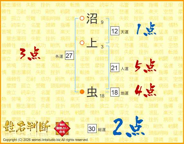 沼上虫さんの人運は21画の5点!
