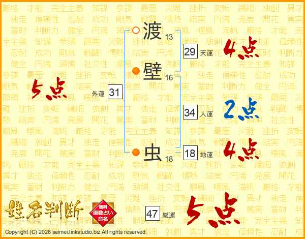 渡壁虫さんの総運は47画の5点!