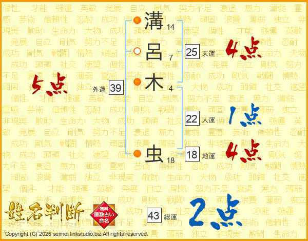 溝呂木虫さんの外運は39画の5点!