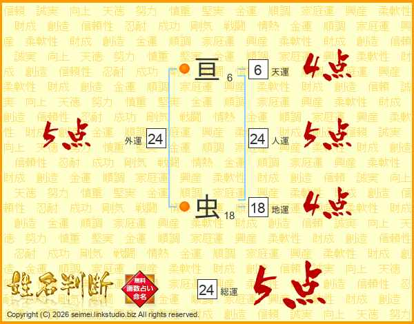 亘虫さんの総運は24画の5点!