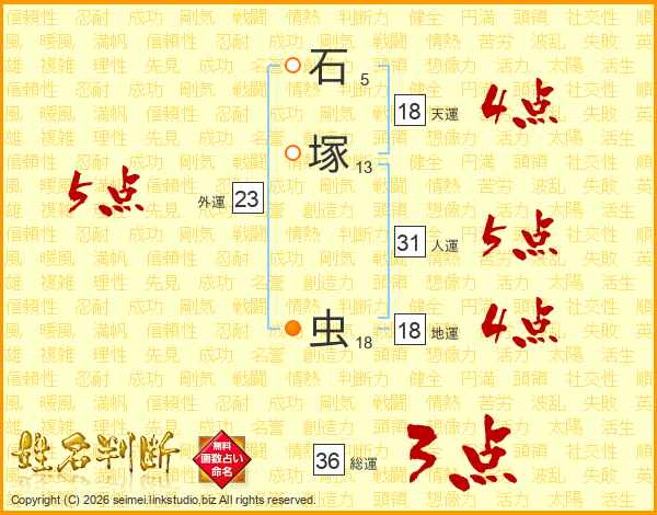 石塚虫さんの天運は18画の4点!