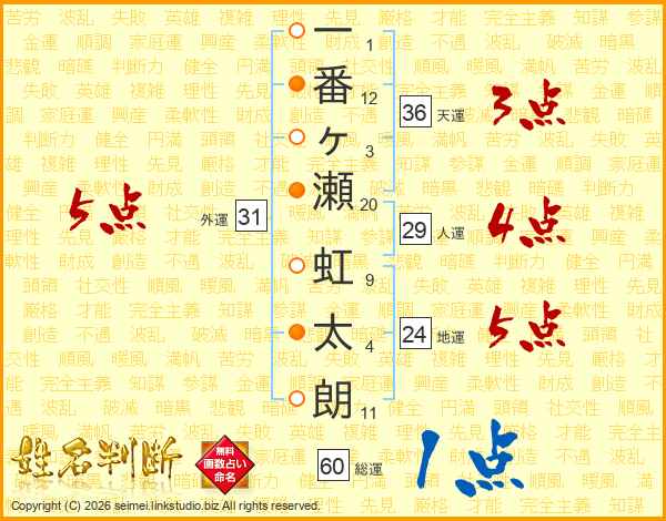 一番ヶ瀬虹太朗さんの外運は31画の5点!