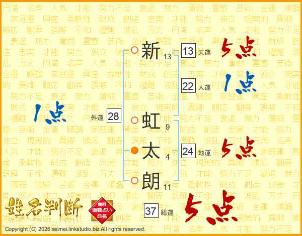 新虹太朗さんの総運は37画の5点!
