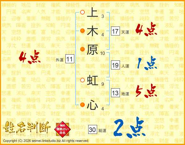 上木原虹心さんの総運は30画の2点!