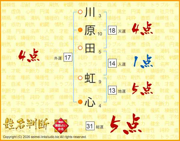 川原田虹心さんの総運は31画の5点!