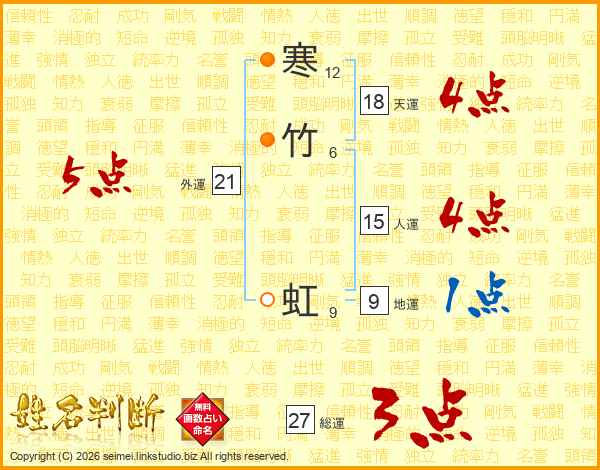 寒竹虹さんの天運は18画の4点!