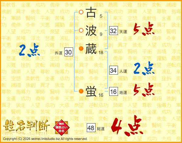 古波蔵蛍さんの総運は48画の4点!