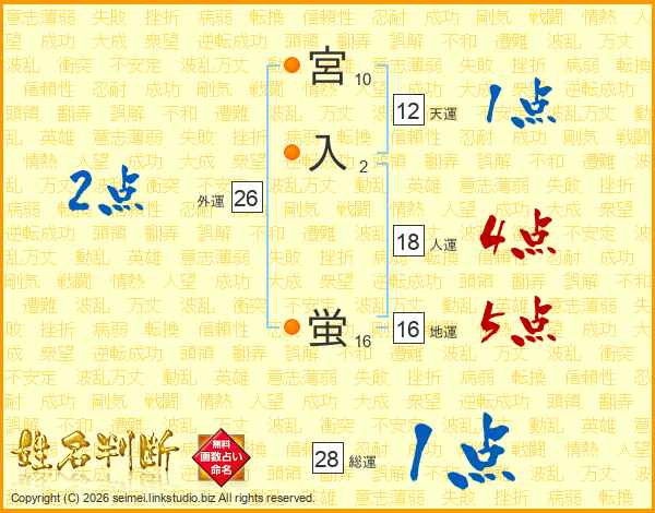 宮入蛍さんの外運は26画の2点!