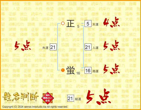 正蛍さんの総運は21画の5点!
