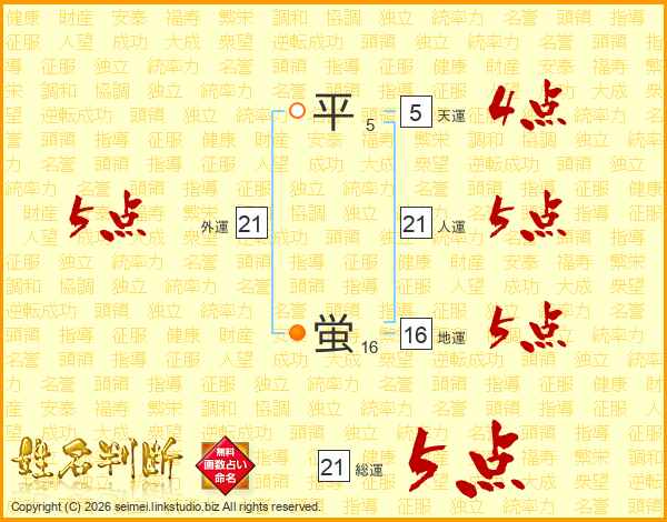 平蛍さんの総運は21画の5点!
