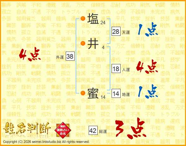 塩(24画)井(4画) 蜜(14画)