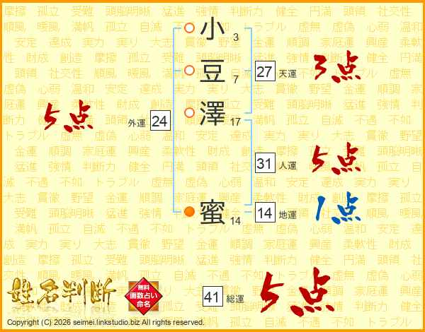 小豆澤蜜さんの総運は41画の5点!