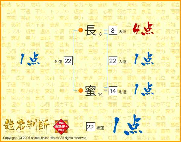 長蜜さんの総運は22画の1点!