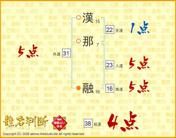 漢那融さんの天運は22画の1点!
