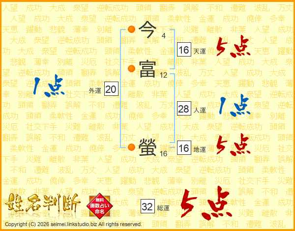 今富螢さんの総運は32画の5点!
