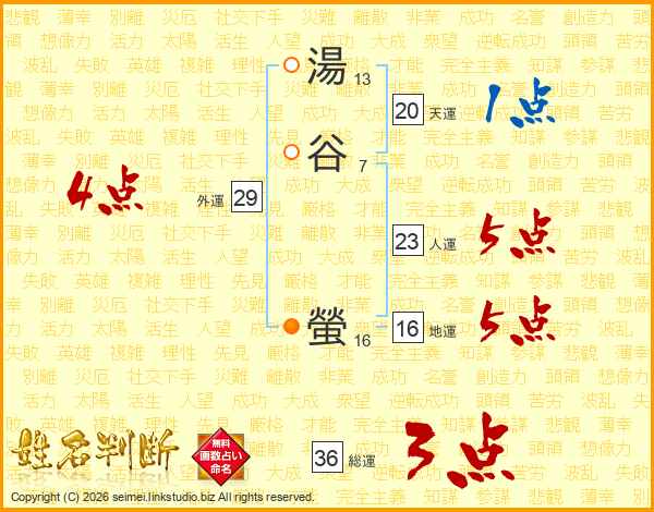 湯谷螢さんの総運は36画の3点!