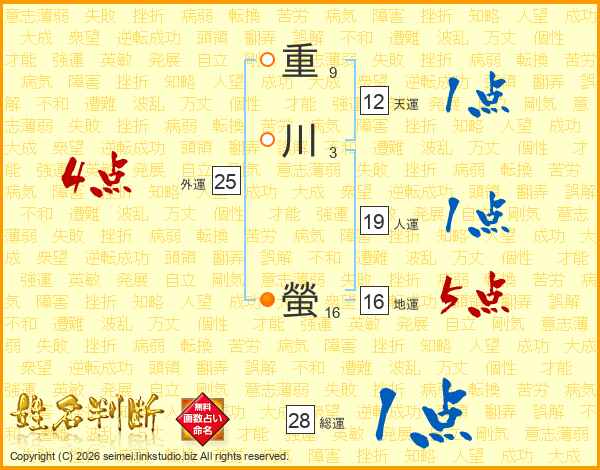 重川螢さんの総運は28画の1点!