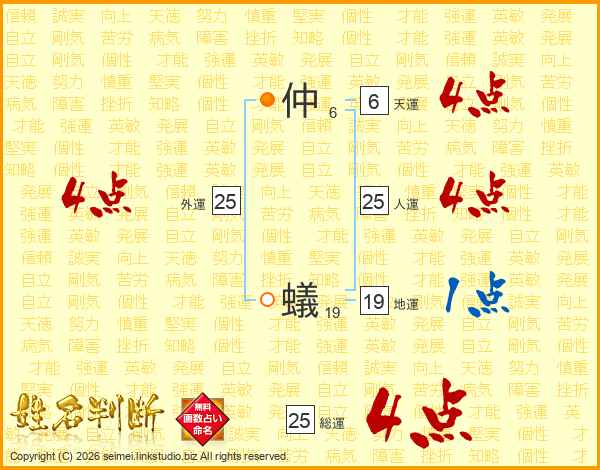 仲蟻さんの人運は25画の4点!