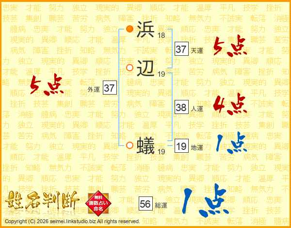 浜辺蟻さんの天運は37画の5点!