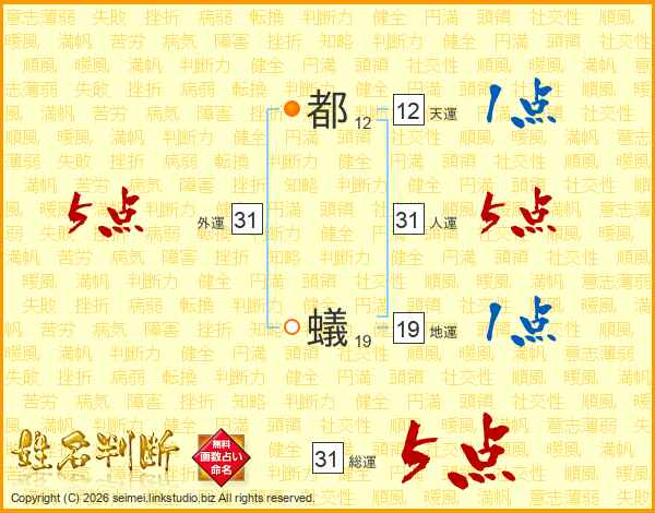 都蟻さんの総運は31画の5点!