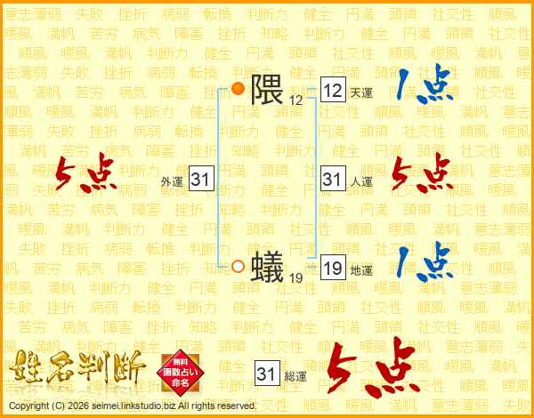 隈蟻さんの人運は31画の5点!