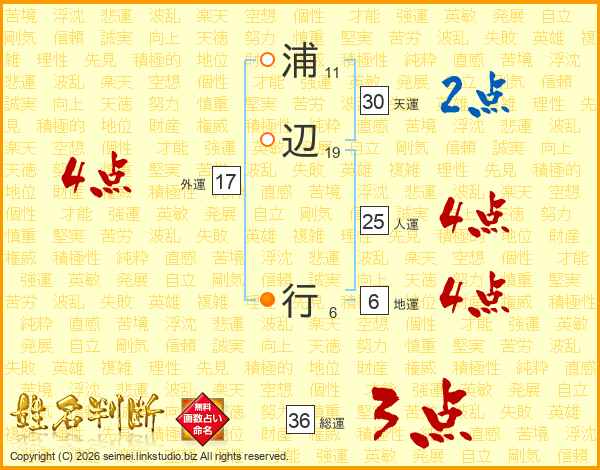 浦辺行さんの総運は36画の3点!