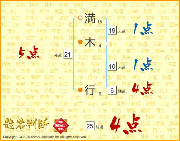 満木行さんの総運は25画の4点!