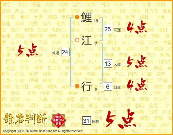 鯉江行さんの総運は31画の5点!