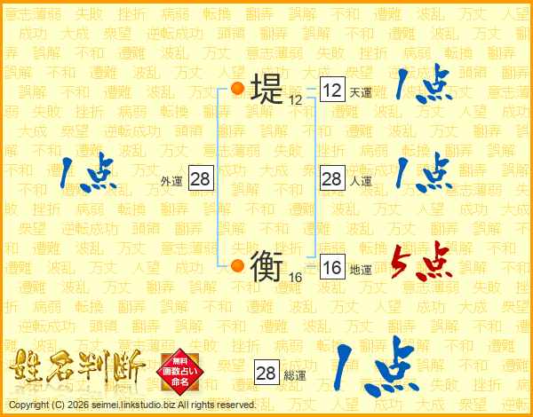 堤衡さんの総運は28画の1点!