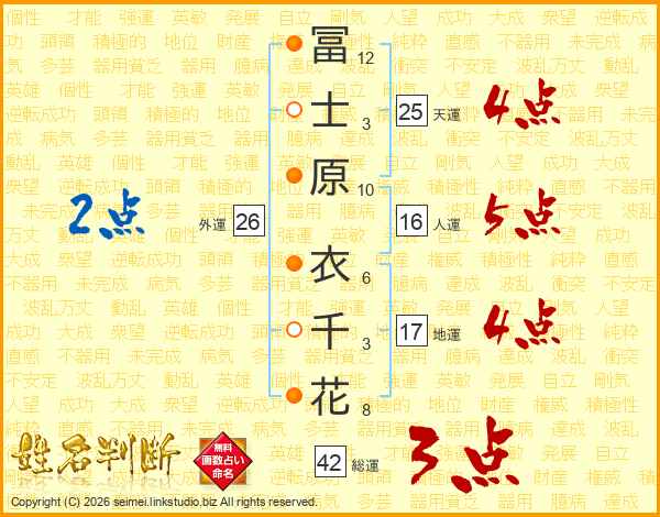 冨(12画)士(3画)原(10画) 衣(6画)千(3画)花(8画)