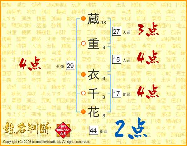 蔵重衣千花さんの総運は44画の2点!