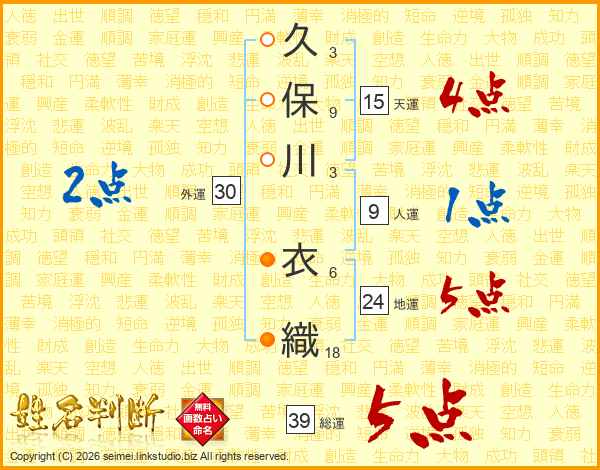 久保川衣織さんの総運は39画の5点!