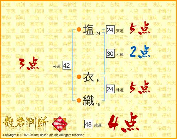 塩衣織さんの天運は24画の5点!