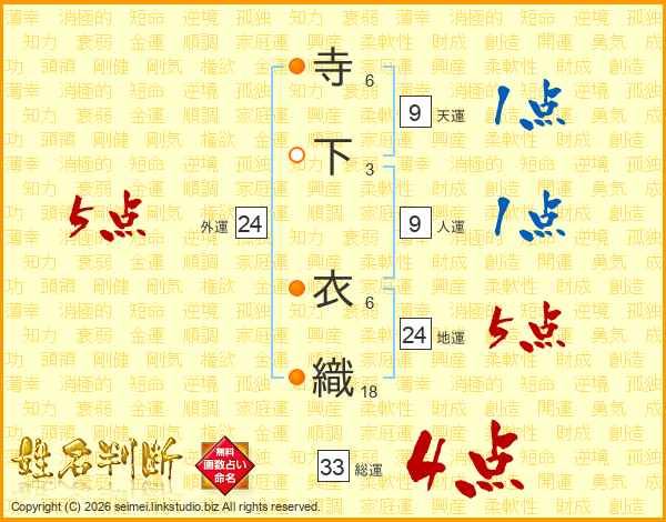 寺下衣織さんの総運は33画の4点!