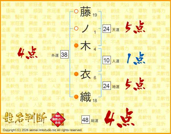 藤ノ木衣織さんの外運は38画の4点!