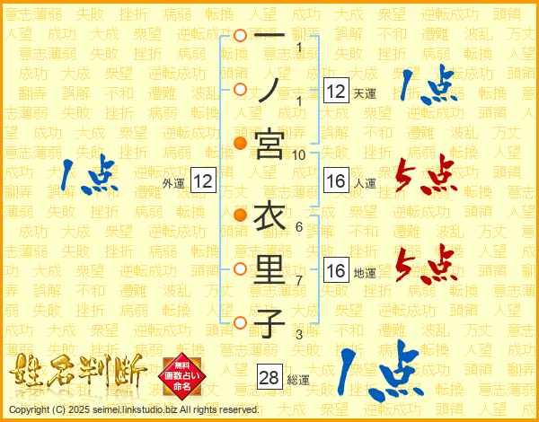一ノ宮衣里子さんの総運は28画の1点!